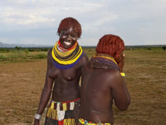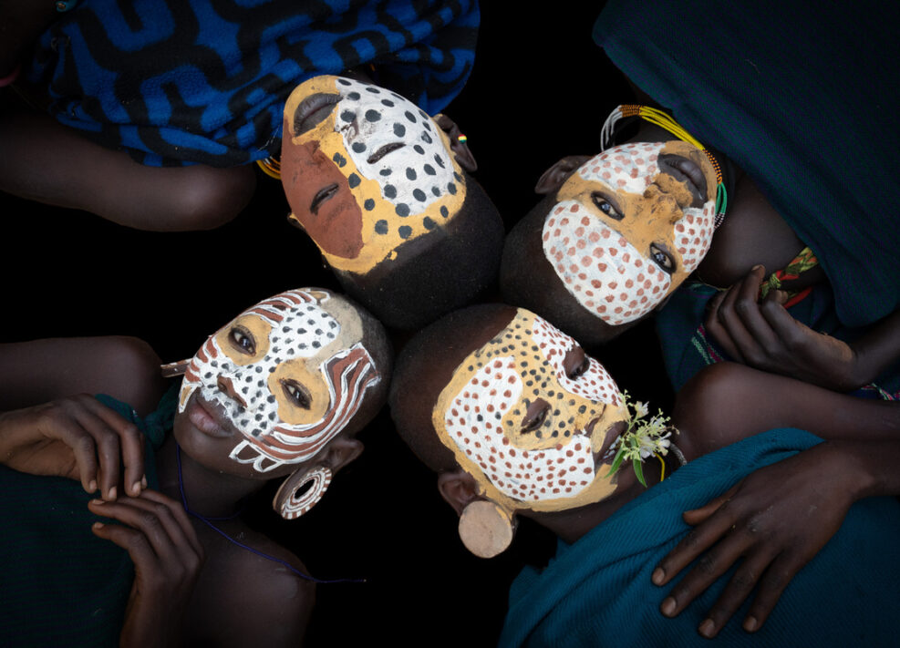 The Karo tribe, consisting of c1,500 people, is the smallest ethnic group in the Omo Valley. They live along the east banks of the Omo River and it is the source of their livelihood. Annual flooding makes the area’s biodiversity rich and therefore plentiful for collection, which the Karo use to their advantage.