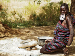The 34,000 strong Suri tribe live in the southwestern plains of Ethiopia and South Sudan. They are successful livestock farmers (cattle, goats and sheep) and horticulturists, using rain fed and garden based cultivation methods. During the dry season, they also collect honey.